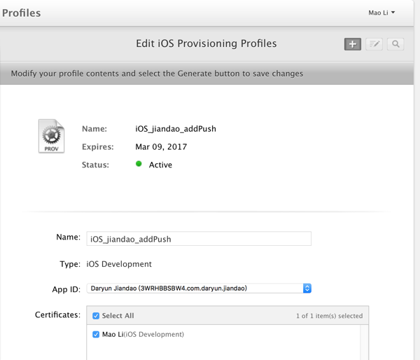 -》但是此时,只能自动上传UDID,但是无法自动生成相应的,包含了新设备的profile文件