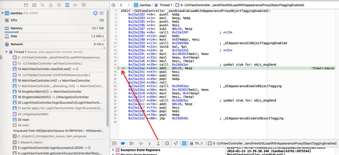 然后在显示此汇编代码之前,屏幕对于应该跳转到的函数的调用的地方,是能看到的,但是一闪而过。。。