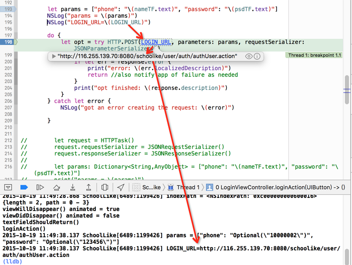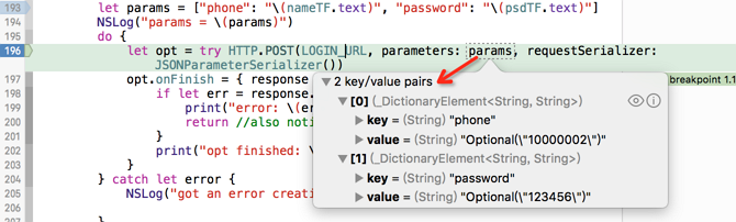 xcode调试很不方便,调试期间,没法及时的查看变量的值: