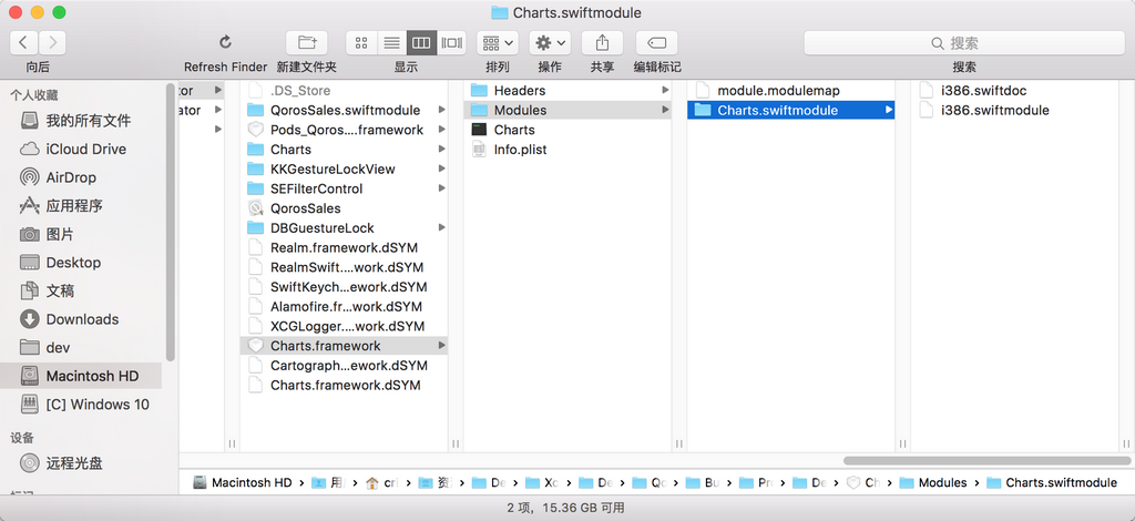 即,对于iOS的真机,比如我此处的iPhone6的话,用的则是此处的Debug-iphoneos/Charts.framework