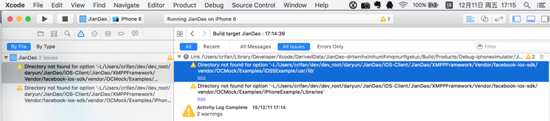 (null): Directory not found for option ‘-L/Users/crifan/dev/dev_root/daryun/JianDao/iOS-Client/JianDao/XMPPFramework/Vendor/facebook-ios-sdk/vendor/OCMock/Examples/iOS5Example/usr/lib’ |