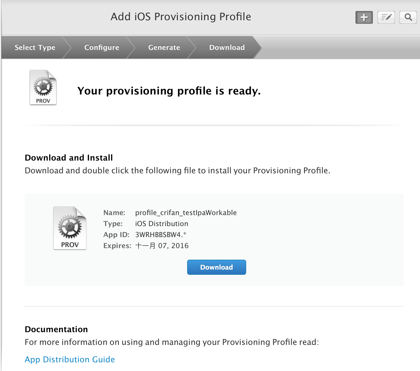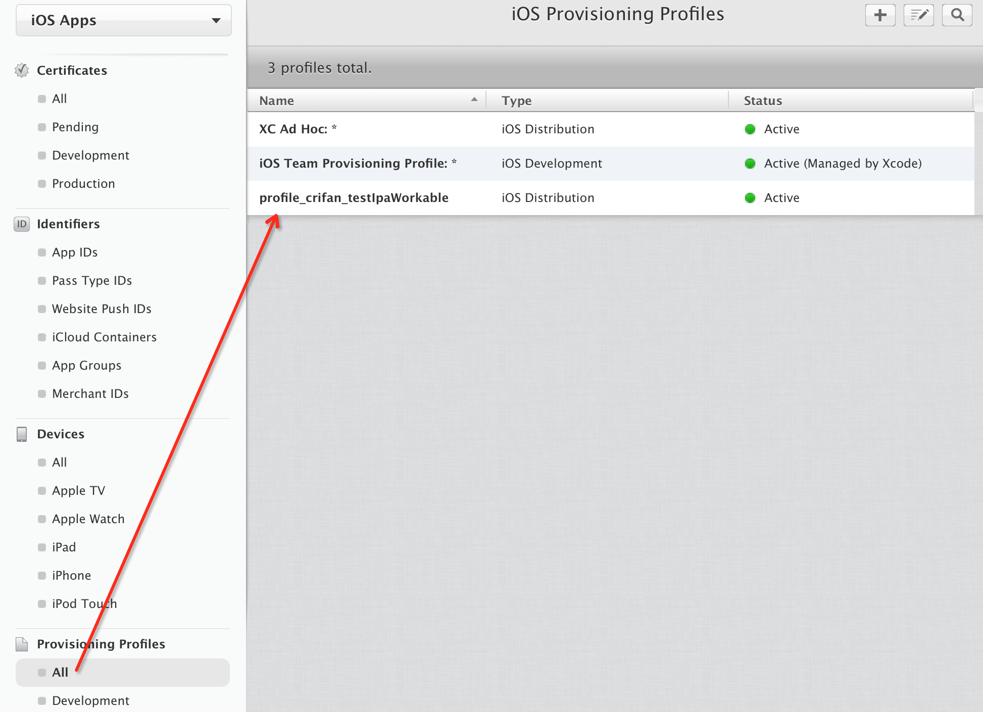 创建之后,即可在Provisioning Profiles中看到: