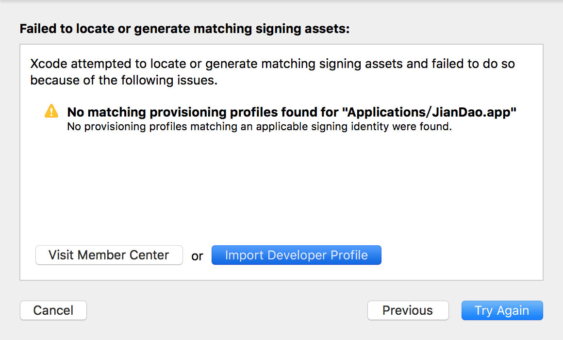 [已解决]Xcode打包失败:No matching provisioning profiles found for