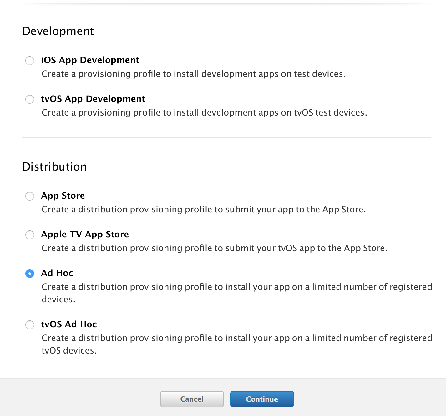 创建对应的Ad Hoc的provisioning profile