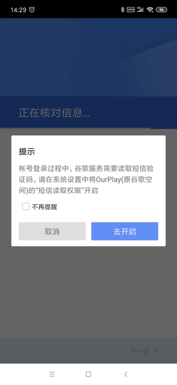 Our Play点击 登录谷歌账号后,在 正在核对信息后,可以继续登录了: