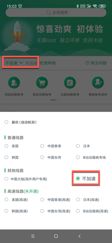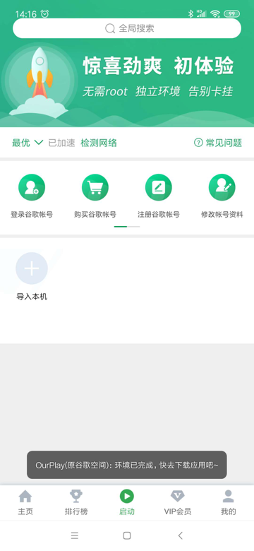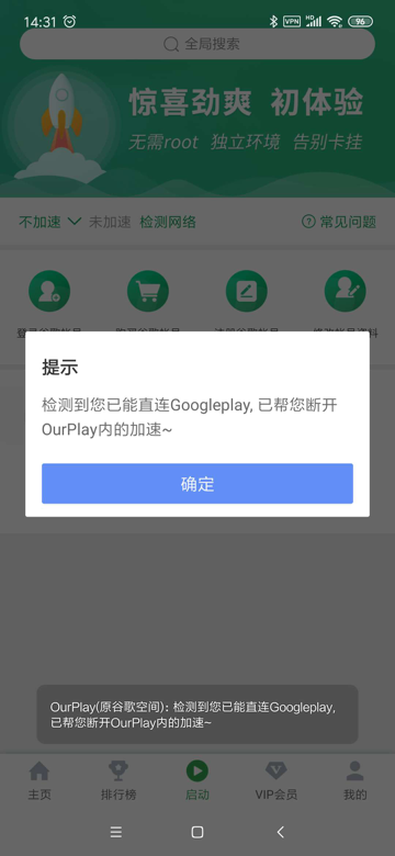 OurPlay 原谷歌空间 检测到您已经能直连GooglePlay,已帮你断开OurPlay内的加速