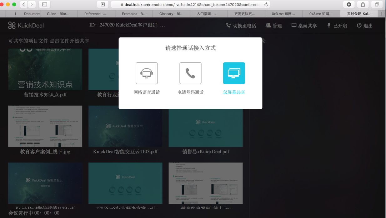 进入这个链接   选择第三种接入方式“仅屏幕共享”