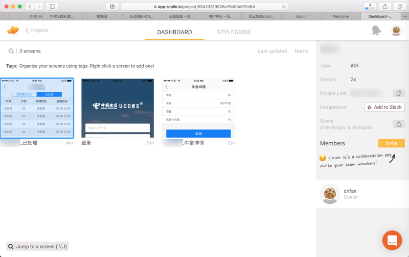 并在PS中安装了插件,把PSD上传到了zeplin的项目中